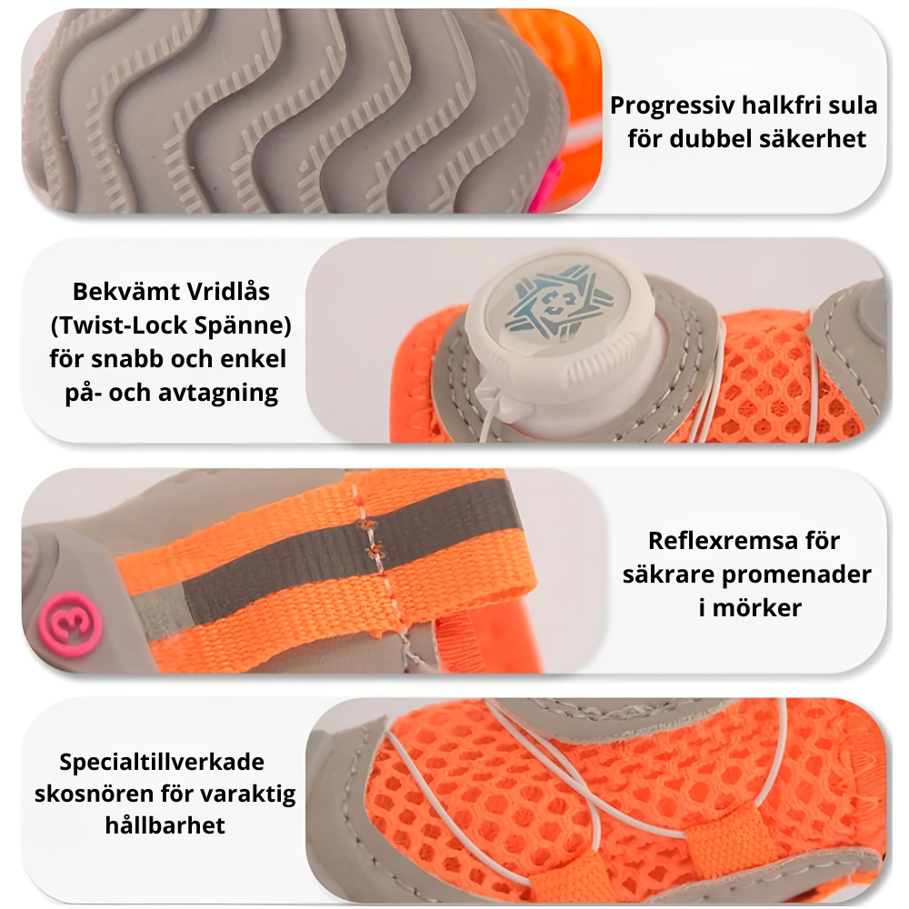 Designade med en perfekt balans mellan komfort, skydd och flexibilitet, vilket gör att hunden kan röra sig naturligt utan att skorna glider av.