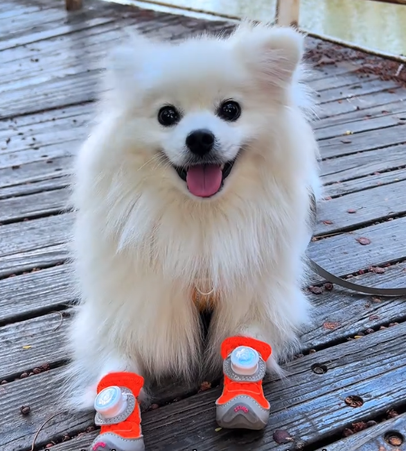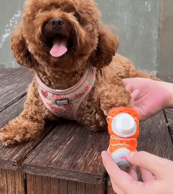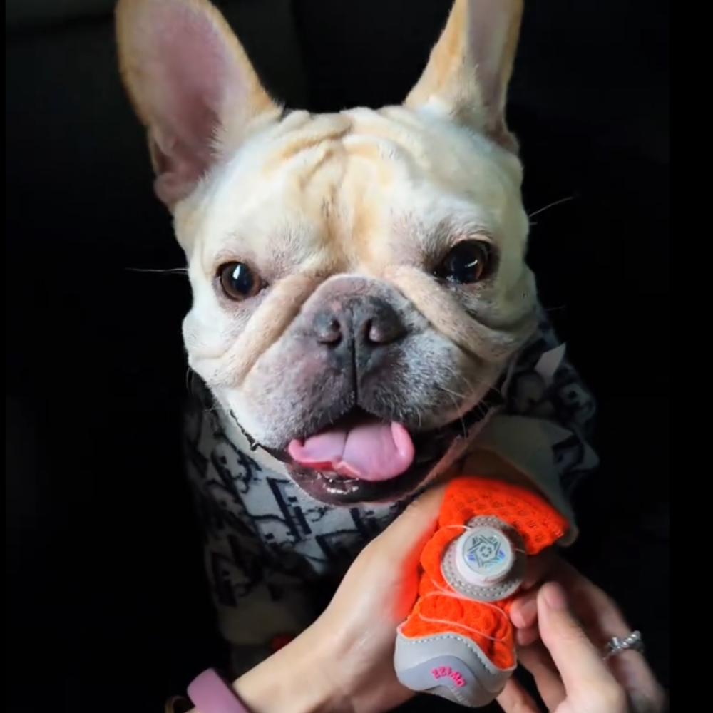 "Tasskydd™ sitter verkligen perfekt! Med det smarta vrid- och åtdragningssystemet är det superenkelt att ta på och av, samtidigt som de sitter säkert hela promenaden. Bella kan springa fritt och tryggt på alla underlag – vi är så nöjda!"